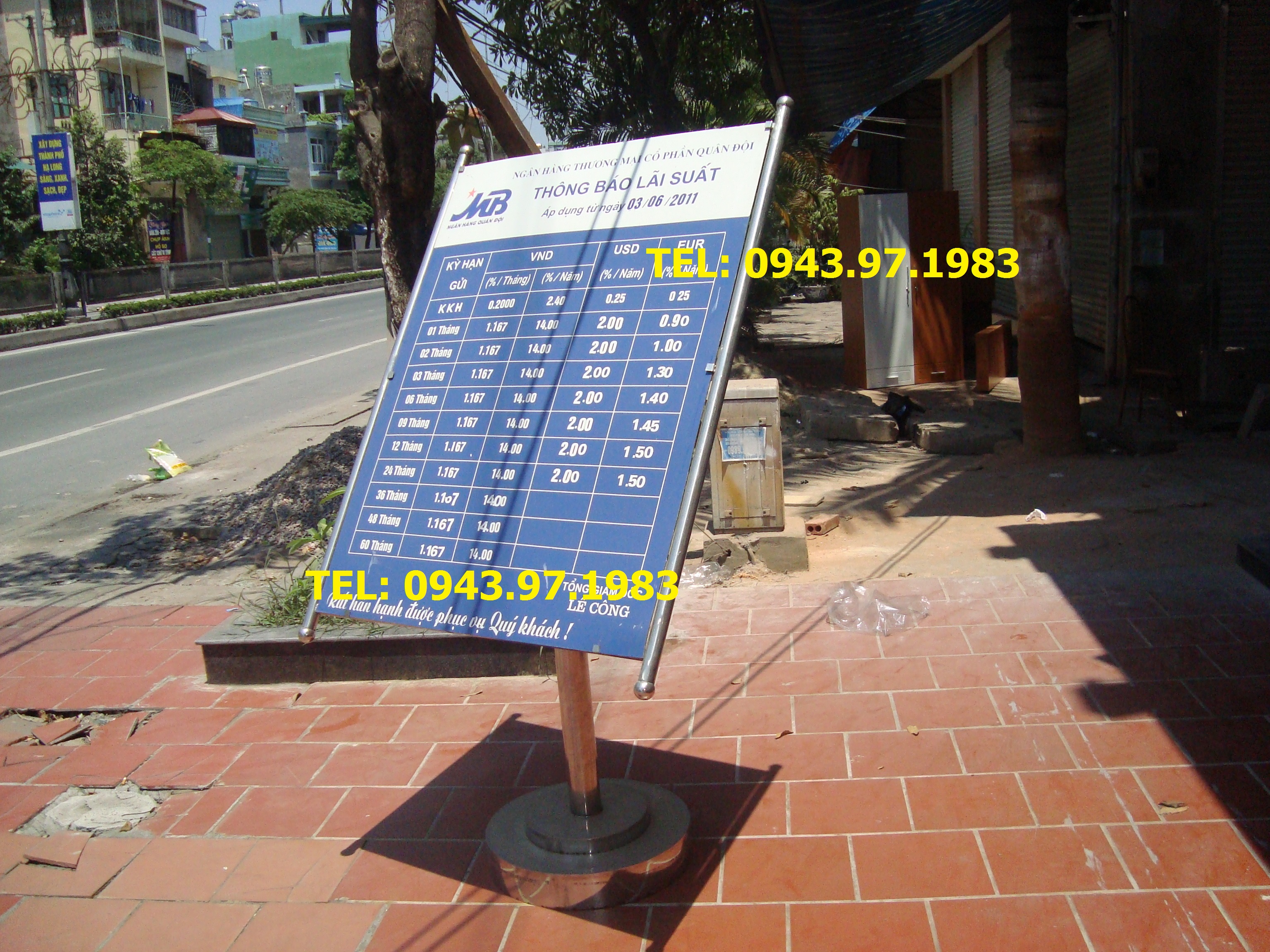 Bảng lãi suất ngân hàng được sản xuất bởi thiết kế riêng biệt dành cho ngành ngân hàng. Bảng lãi suất ngân hàng là loại biển khá phổ biến trên thị trường hiện nay bởi tính khả dụng của nó. Chính về sự đa dạng về mẫu mã, giá thành tương đối rẻ, độ bền cao mà bảng lãi suất ngân hàng cũng rất được ưa chuộng đối với nhiều ngân hàng.