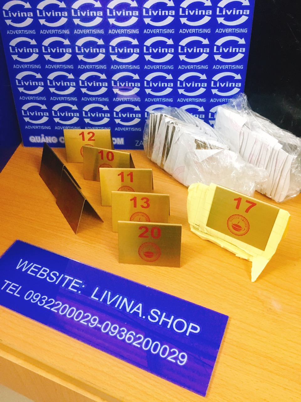 Chúng tôi có những mẫu thiết kế có sẵn khá phù hợp với nhu cầu của quý khách hàng. Do sử dụng chất liệu bằng Mica, biển số bàn được thiết kế khá phù hợp với nhu cầu của quý khách hàng. Biển số bàn được sử dụng chất liệu bằng Inox hoặc chất liệu bằng Mica khá phù hợp, đảm bảo nhu cầu của quý khách.
