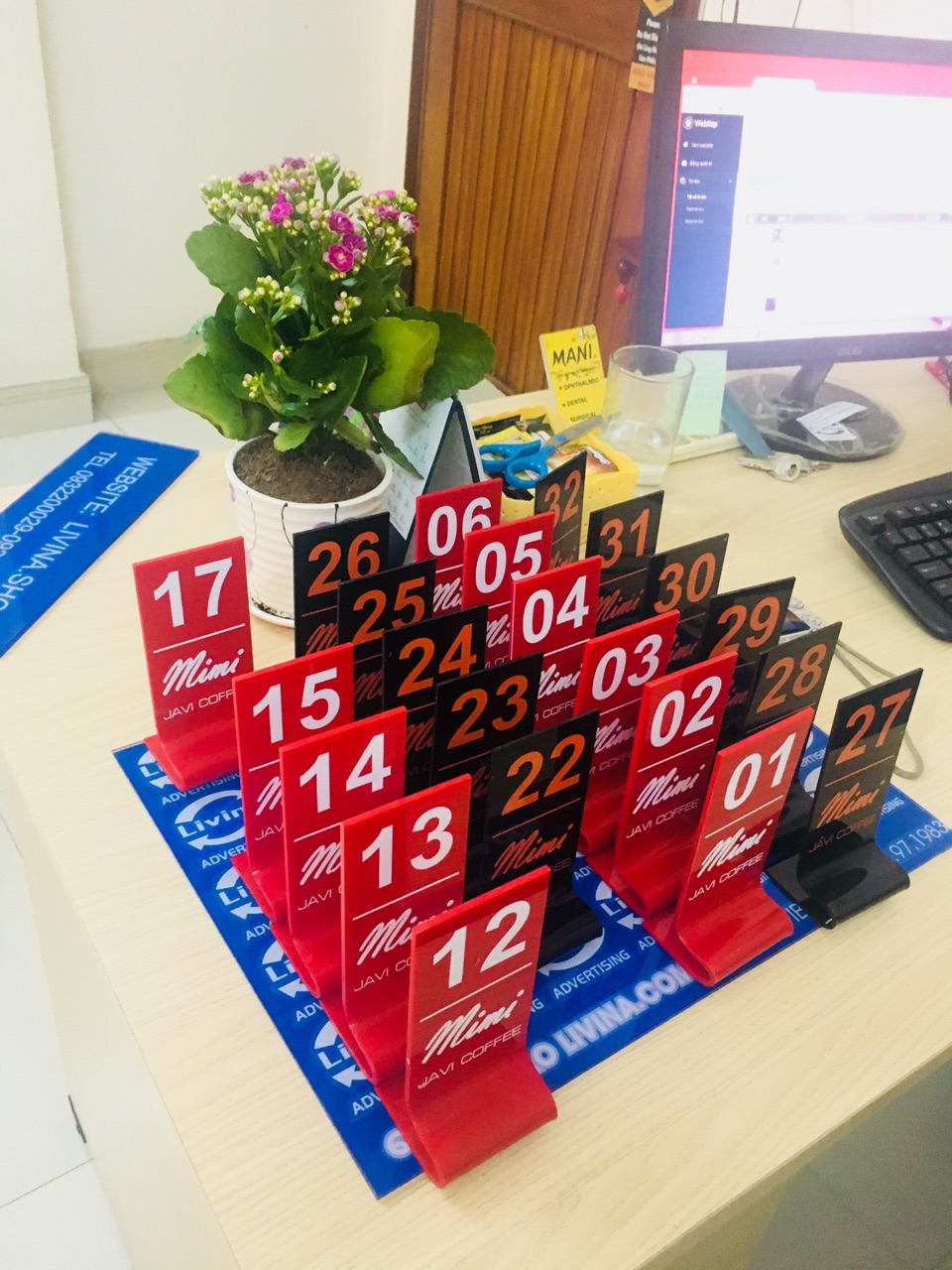 Để xem mẫu biển số bàn của chúng tôi quý khách có thể xem mẫu trực tiếp tại công ty chúng tôi hoặc hãy liên hệ với chúng tôi để được tư vấn và hỗ trợ nhiệt tình hoặc quý khách có thể truy cập vào trang QUANGCAOLIVINA.COM hoặc LIVINA.SHOP để được tư vấn theo nhu cầu.