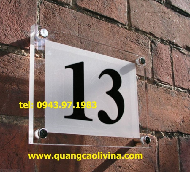 Biển số nhà được làm từ chất liệu mica bền đẹp,khó phai màu ,thời gian sử dụng lâu dài giúp khách hàng tiết kiệm chi phí không phai thay mới nhiều lần. Hiện nay biển số nhà là thứ không thể thiếu đối với đối với mỗi gia đình.Khách hàng chỉ cần biết sô nhà,tên đường ,tên phố thì sẽ tìm được địa chỉ đúng.Hiểu được nhu cầu cần thiết của các biển số nhà,biển tên đường QUANGCAOLIVINA nhận cung cấp các loại biển theo yêu cầu làm bằng mica.
