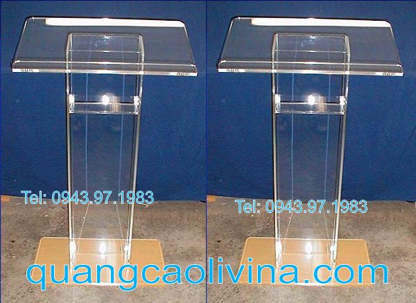 Qúy khách cần mua bục phát biểu, đang tìm đơn vị quảngcáo sản xuất bục phát biểu. Chúng ta có thể thấy thông thường bục phát biểu thường được làm bằng chất liệu gỗ, nhưng đến vớiQUANGCAOLIVINA.COM bạn sẽ được cung bục phát biểu bằng mica trong Đài Loan hoàn toàn mới lạ. QUANGCAOLIVINA.COM chuyên sản xuất bục phát biểu , cần mua bục phát biểu, cần bán bục phát biểu cho các đơn vị nhà trường. Bục phát biểu bằng mica trong 8mm, 10mm hoặc dày hơn theo nhu cầu . Được thiết kế đơn giản kiểu dáng nhẹ nhàng thanh thoát với thiết kế khác biệt so với các mẫu sản phẩm trước. Bục phát biểu có thể trang trí logo và hình ảnh công ty hoặc trường học, bục phát biểu có thể làm led để sáng đẹp, hoặc bục phát biểu gắn thêm mica.