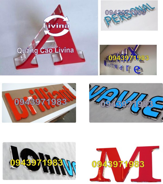 Hiện nay QUANGCAOLIVINA sử dụng công nghệ cắt laser, CNC trong việc gia công chữ, tạo độ chính xác cao, sắc nét tạo tính thẩm mỹ, bền đẹp cho biển quảng cáo chữ nổi nói chung và chữ nổi nói riêng. Vật liệu phổ biến nhất trong chữ nổi là mica, aluminum, focmex,… do có nhiều màu sắc, dễ gia công, giá thành thấp. Qúy khách cần thêm thông tin gì vui lòng liên hệ chúng tôi.