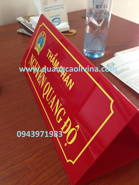 Nhờ biển chức danh mica bán sẵn, đặt làm biển chức danh theo yêu cầu riêng, biển chức danh đế gỗ mặt đồng, biển chức danh inox, biển chức danh in ấn trên mica, kệ chức danh mà người đối diện, đối tác, khách hàng có thể nhận diện rõ ràng thương hiệu, chức danh của người đối diện.