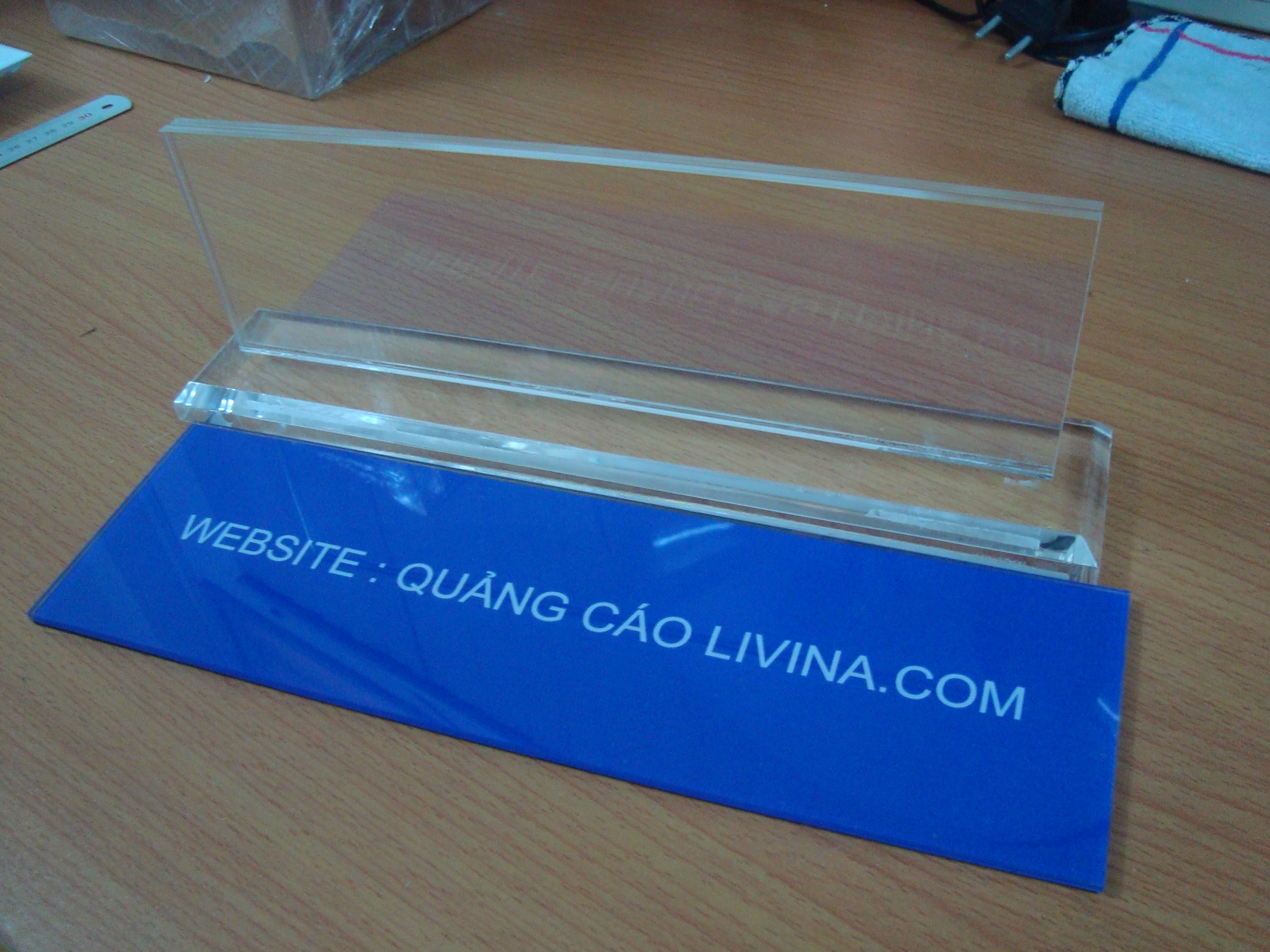 Biển mica chức danh bộ đội với thiết kế đơn giản, thanh lịch . Biển mica chức danh bộ đội là biển dùng vật liệu mica trong gia công uốn gập và cắt laser. Biển mica chức danh bộ đội đế 2mm, mặt biển 8,5* 17cm thường được các đơn vị lựa chọn. Biển mica chức danh bộ đội có thể thay tên thay nội dung trên biển theo nhu cầu của khách hàng.