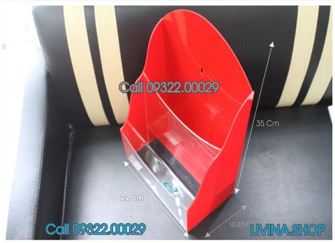 Sản phẩm kệ tờ rơi được thiết kế với nhiều kích thước khác nhau tùy mục đích sử dụng. Hiện tại có một số loại kệ tờ rơi mica thường được sử dụng gồm: Kệ tờ rơi 1 ngăn, kệ tờ rơi 2 ngăn, kệ tờ rơi 3 ngăn, kệ tờ rơi 4 ngăn,...và kệ tờ rơi nhiều ngăn theo yêu cầu khách hàng.Sản phẩm kệ tờ rơi, khay đựng tờ rơi được làm từ chất liệu mica cao cấp. Với ưu điểm của vật liệu mica: Dễ dàng để gia công cắt khắc theo thiết kế, chất liệu mica không thấm nước, không mối mọt, trọng lượng nhẹ thuận tiện trong di chuyển.Ngoài công dụng đựng tờ rơi, các mẫu kệ mica đựng tờ rơi còn được sử dụng rộng rãi tại văn phòng nhằm mục đích đựng các loại giấy tờ với các khổ giấy A4, A5, A6,...