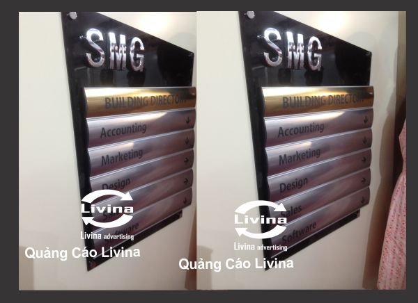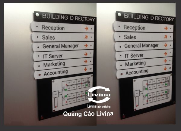 Sử dụng chất liệu bằng Mica hoặc inox biển chỉ dẫn tòa nhà luôn được thiết kế phù hợp với nhu cầu của quý khách hàng. Nếu quý khách đang có nhu cầu, hãy liên hệ ngay với chúng tôi để được báo giá sớm nhất.