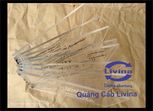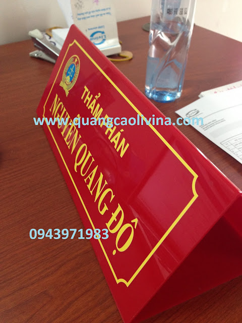 QUANGCAOLIVINA.COM chuyên gia công các sản phẩm mica tại Hà Nội cung cấp các sản phẩm : biển chức danh bộ độ, biển chức danh ngành công an, biển chức danh mica đế mài, biểnchức danh đế gỗ mặt đồng, biển chức danh đế mica 20mm, biển chức danh giám đốc,gia công biển chức danh mica cho đại biểu, biển chức danh 3 mặt, biển mica 2ngăn các màu mica trong, mica cam, biển mica để tên sản phẩm, biển mica chữ L, biển mica 1 mặt để tên đại biểu, kệ mica làm menu, biển mica làm bảng lãi suất, biển mica làm kệ mica cho quán café. Ngoài ra,QUANGCAOLIVINA.COM nhận gia công lại các loại kệ mica cho các công ty quảng cáo đáp ứng thời gian nhanh nhất và đáp ứng được chất lượng và thẩm mĩ của kệ mica theo yêu cầu.