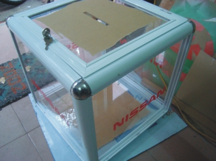 Hòm bốc thăm trúng thưởng được làm từ chất liệu gì? Hòm phiếu được làm từ mica tấm đài loan 2mm ,3mm, 5mm, sản phẩm tùy vào yêu cầu. Hòm bốc thăm trúng thưởng có thể là hòm mica trong 6 mặt cũng có thể hòm bỏ phiếu được gắn decal 6 mặt với logo và thông tin quảng cáo của doanh nghiệp, hoặc có thể được bo nhôm tạo sự cứng cáp và hợp với các công ty nhà nước trong các cuộc bầu cử đại biểu. Hòm bốc thăm trúng thưởng được khoét một lỗ hình elip, hình vuông hoặc hình tròn tùy theo yêu cầu của khách hàng.