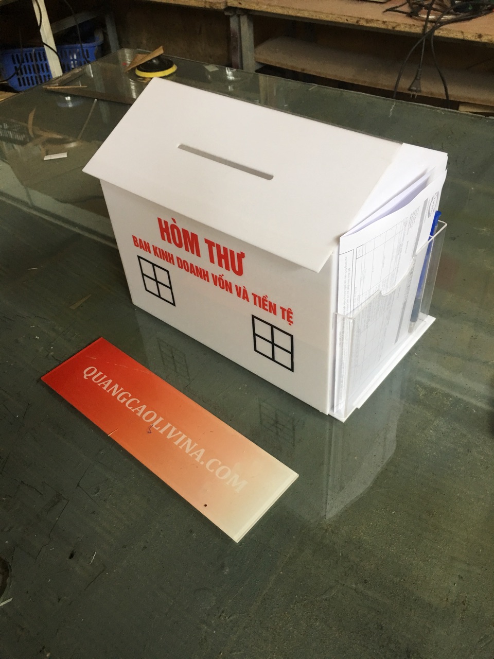 QUANGCAOLIVINA.COM chuyên sản xuất hòm thư góp ý kiểu mái nhà với rất nhiều mẫu đẹp và bắt mắt, hòm thư góp ý giá rẻ luôn có sẵn, để phục vụ được kịp thời các nhu cầu của khách hàng chúng tôi có sản xuất một số lượng thùng phiếu, hòm phiếu mica trong để bán sẵn cho quý khách hàng. Những sản phẩm hòm thư góp ý mica màu, thùng phiếu.