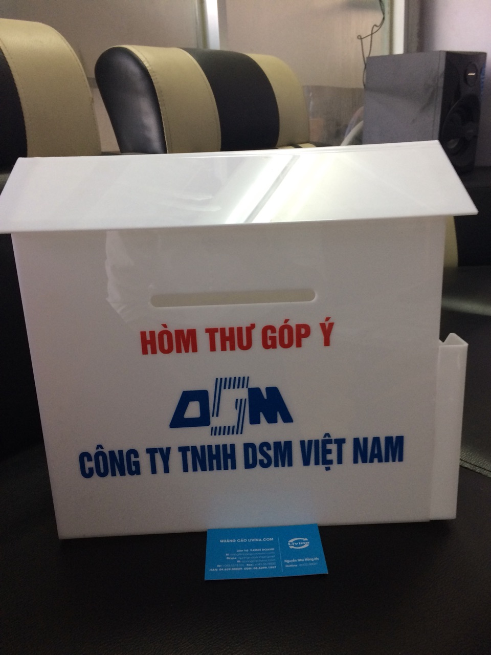 Hòm thư góp ý, hòm thư mica là một trong những vật dụng chẳng thể thiếu trong các cơ quan, doanh nghiệp đặc biệt là cơ quan Nhà nước. Hòm thư góp ý là vật thể có hình lập phương hoặc hình hộp chữ nhật, được sản xuất có khe trống để thả phiếu, để có thể dễ dàng lấy thông tin từ hòm thư góp ý.