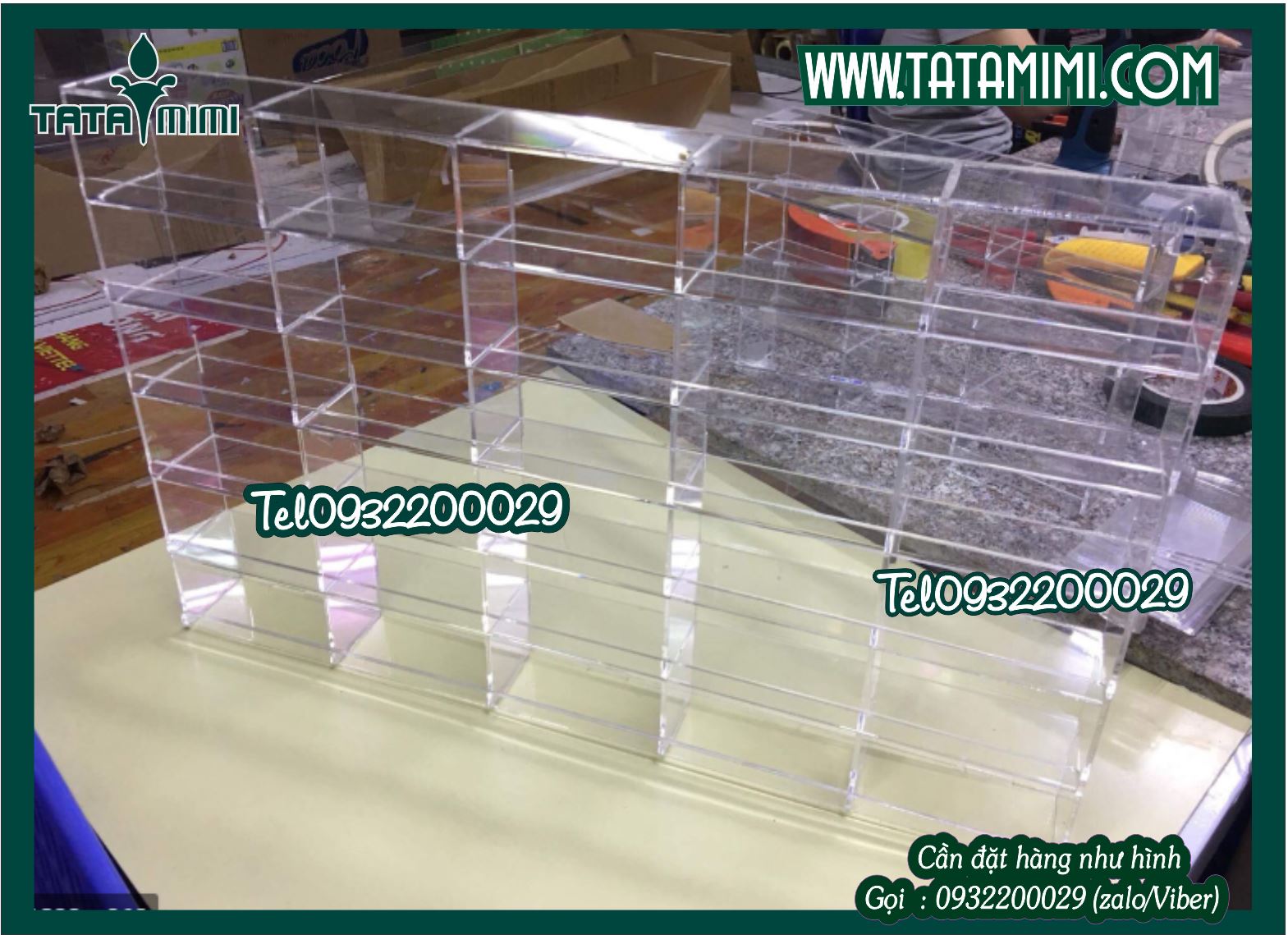 Ngoài Hộp mica để bàn TATAMIMI.COM còn là đơn vị thiết kế, sản xuất các loại Khung kệ khác như: Khung tranh để bàn, khung mica để bàn, khung mica có led, khung mica treo poster, khung tranh mica… với các kích thước A4, A5, A6 hoặc có thể làm theo các kích thước khác nữa. Với kinh nghiệm lâu năm, đội ngũ công nhân lành nghề, nguồn chất liệu mica Đài Loan cao cấp sẽ cho ra những sản phẩm Khung tranh ảnh mica có độ bền cao, giá thành rẻ.
