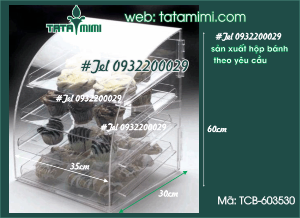 Kệ đựng bánh ngọt, Hộp đựng bánh ngọt được dùng để đặt tại các cửa hàng bánh ngot, các siêu thị có quầy bánh ngọt, các quán café có phục vụ thêm bánh ngọt, các cửa hàng bán bánh, để trưng bày, bảo quản các mẫu bánh để khách hàng tiện tham khảo cũng như để bảo vệ sản phẩm khỏi các tác nhân gây mất vệ sinh sản phẩm. Hiểu được nhu cầu cần thiết đó TATAMIMI.COM chúng tôi cung cấp các sản phẩm Kệ đựng bánh ngọt, Hộp đựng bánh ngọt đáp ứng yêu cầu của khách hàng giúp bảo quản bánh ngọt được tiện lợi, vệ sinh và đẹp mắt hơn. Kệ đựng bánh ngọt, Hộp đựng bánh ngọt được gia công sản xuất từ mica nên rất tiện lợi dễ dàng vận chuyển.