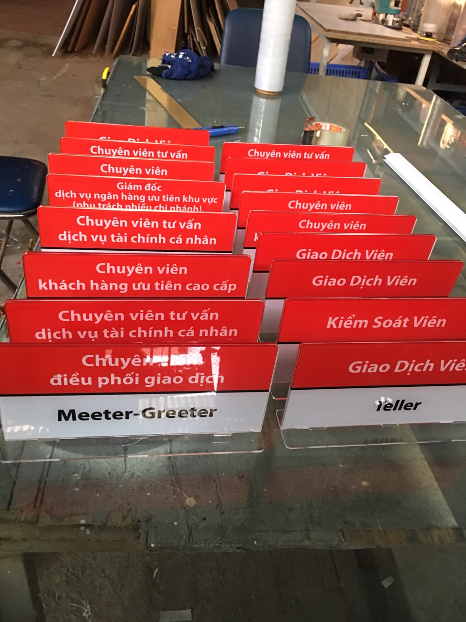 Khi công ty bạn mới thành lập hoặc công ty bạn thành lập những phòng ban mới thì đương nhiên bạn cũng cần làm những biển chức danh mới.Và tất nhiên, khi những tấm biển chức danh của bạn bị hỏng hóc, bạn cũng cần làm lại chúng.Bởi vì bạn là những người bận bịu còn chúng tôi cung cấp cho bạn sự tiện lợi cùng với đó là những cam kết về chất lượng và giá cả. Mẫu mã cũng là vấn đề bạn cần lưu tâm nhưng khi đến với QUANGCAOLIVINA, bạn sẽ được tư vấn một loại biển chức danh để bàn hợp lý nhất. Chúng tôi luôn lấy suy nghĩ của khách hàng làm trung tâm và đó là lý do để bạn tin rằng bạn sẽ nhận được một dịch vụ hoàn hảo khi gọi đến cho chúng tôi.