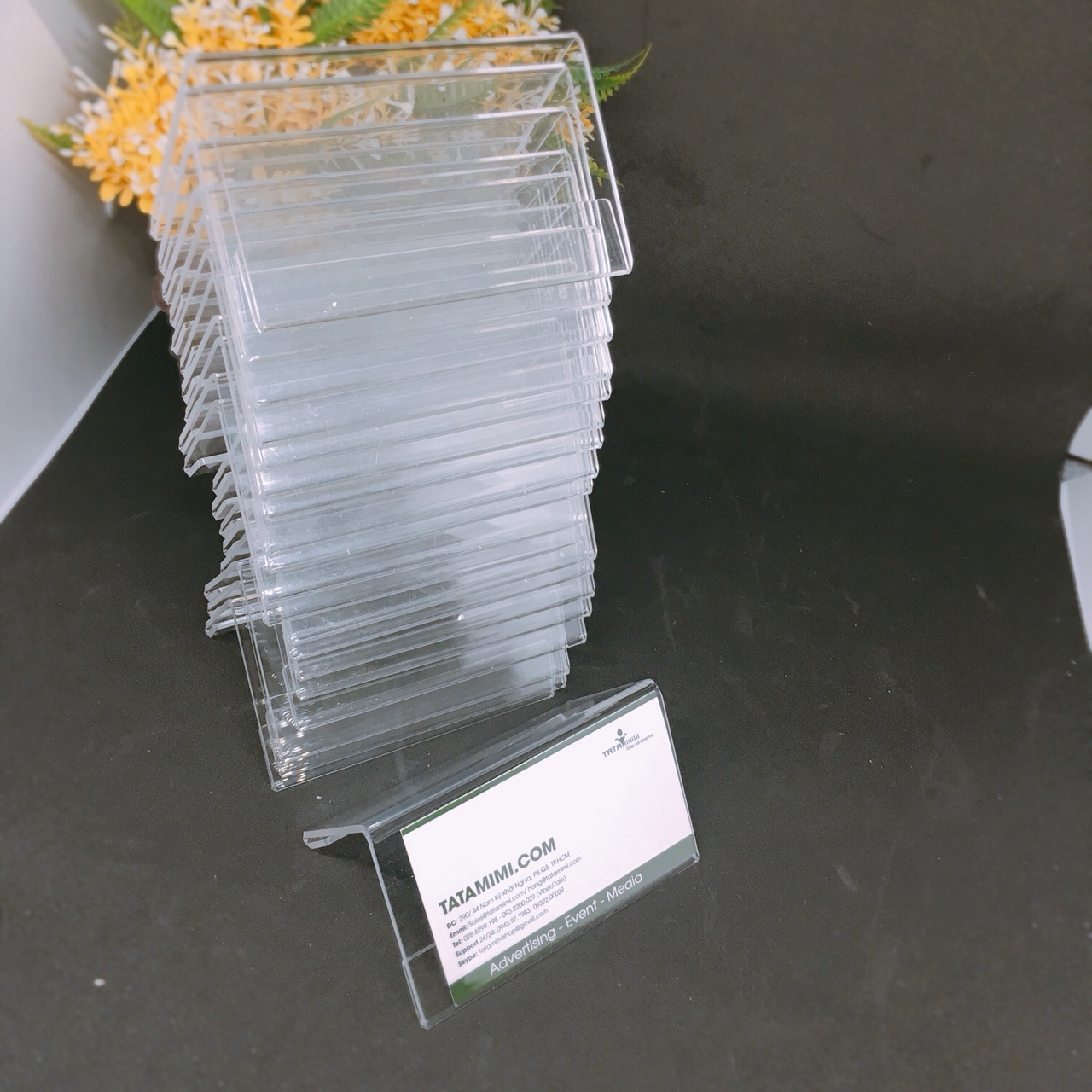 Kệ giá tên sản phẩm được thiết kế khá gọn, đẹp mắt, có độ dày từ 2mm, 3mm, 5mm tùy thuộc vào kích thước đa dạng. Tuy nhiên sản phẩm phổ biến được sử dụng đó là kích thước A3, A4, A5,A6 và màu sắc theo yêu cầu.