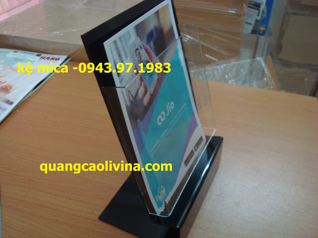 kệ menu chữ L được làm từ mica Đài Loan. Với các kích thước thông dụng: kệmenu chữ L a4, kệ menu chữ L a5, kệ menu chữ L a6. Có thể trang trí logo lên đế sản phẩm hoặc thương hiệu riêng của doanh nghiệp. Chúng tôi nhận thiết kế theo mọi yêu cầu của quý khách.