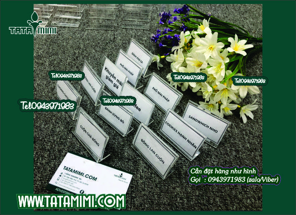 Ngoài Kệ mica để bàn, TATAMIMI.COM còn cung cấp các sản phẩm kệ mica khác như : Kệ checklist nhà vệ sinh, kệ ghi giá tiền sản phẩm, kệ đựng cardvisit, kệ đựng tranh, kệ treo tường, kệ khung tranh khác….