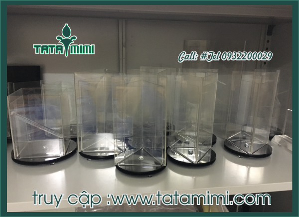 Hộp mica xoay, kệ mica xoay là những sản phẩm được gia công từ mica những sản phẩm này khá đơn giản, tiện lợi nên có thể được dùng ở nhiều địa điểm như văn phòng, ngân hàng, nhà hàng, hiệu sách, cửa hàng