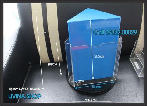 Kệ mica xoay thường dùng với kích thước nào? Chúng tôi có sẵn Kệ mica xoay với kích thước: kệ xoay 3 mặt A5, kệ mica 3 mặt A4, kệ mica lục giác, kệ mica 4 mặt sản phẩm có thể thay đổi kích thước theo yêu cầu.