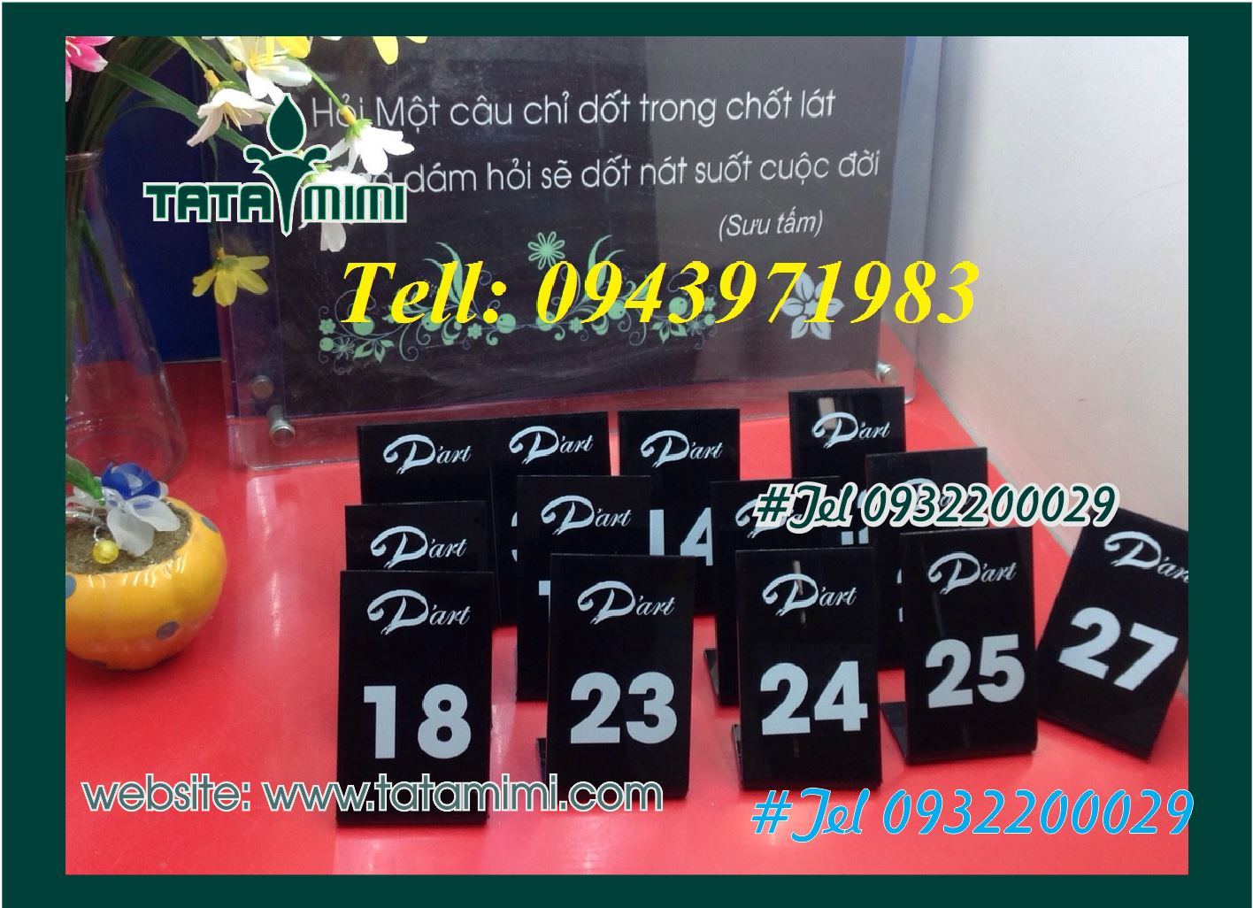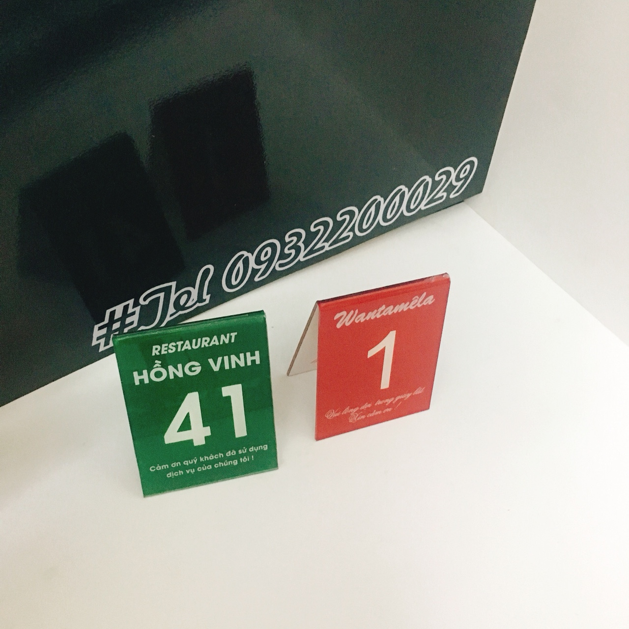 Kệ số để bàn cho quán café bằng mica trong dán decal số màu hoặc in chìm. Biển mica trong để bàn chữ A. Đa dạng về mẫu mã và kích thước, nhận đặt hàng theo yêu cầu với số lượng lớn. Nhấc máy lên và liên hệ ngay với chúng tôi để nhận được báo giá tốt. Liên hệ với TATAMIMI.COM ngay hôm nay để được tư vấn thiết kế miễn phí. Mọi thắc mắc quý khách vui lòng liên hệ với chúng tôi để nhận được báo giá tốt nhất.