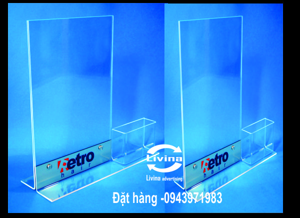 Kệ mica 3 mặt Để vừa 1 tờ (10*20)-Thân mica trong-đế mica đen -Không xoay