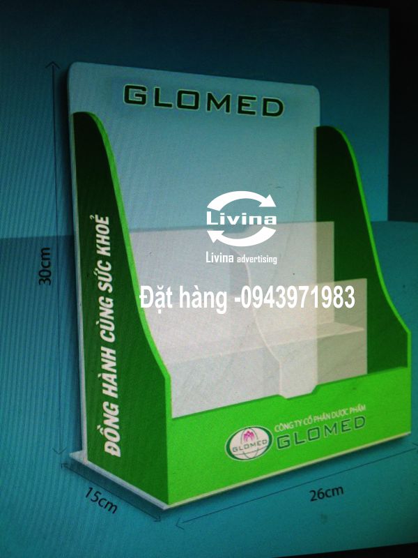 3 mặt -Mỗi mặt để vừa 01 Tờ rơi có kích thước cao 20, ngang 10)cm
