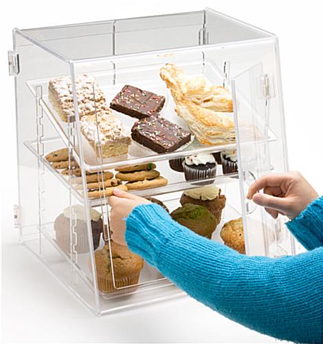 Hộp đựng bánh ngọt bằng mica thể hiện tính thẩm mỹ cao, hộp mica đựng giày thể thao, hộp mica đựng bang ngọt, hộp mica đựng kẹo que, hộp mica đựng bánh quy,… là sản phẩm được dùng để đựng những sản phẩm bánh kẹo được bày bán trong các cửa hàng để giữ vệ sinh và tăng tính thâm mĩ cho sản phẩm hoặc dùng để