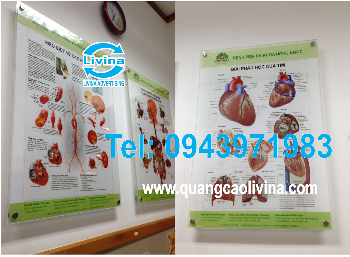 Khung poster tranh kính, biển mica, biển công ty, biển cửa hàng, làm biển quảng cáo tại Hà Nội, biển quảng cáo. Biển mica thường không làm đúng vai trò của một biển quảng cáo, nó đôi khi đóng vai trò như một tấm trang trí trong một không gian nội thất hiện đại của các văn phòng lớn. Chúng tôi đã từng làm các tranh kính với các hình đồ họa trừu tượng cho một trung tâm anh ngữ lớn của Hà Nội, hay đâu đó là hình ảnh các kiểu tóc thời thượng ở một vài salon tóc mà chúng tôi đã từng thi công.