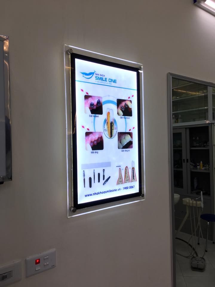 Toàn bộ mica được giữ bởi 04 ốc kính giữ chặt vào tường ở 4 góc. 04 ốc kính này làm từ inox nên có giá trị mỹ thuật cao, biển làm xong có vẻ đẹp rất tinh tế.