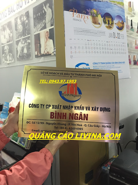 Hãy liên hệ chúng tôi khi có nhu cầu làm biển đồng, biển inox công ty, QUANGCAOLIVINA.COM sẵn sàng tư vấn và thiết kế thi công làm biển đồng, biển inox công ty mọi lúc, mọi nơi, trên toàn quốc, bất cứ lúc nào khách hàng cần, chúng tôi đều có mặt. Hãy để lại số điện thoại của bạn, chúng tôi sẽ liên hệ hoặc vui lòng liên hệ số hotline: 0943 97 1983 để được báo giá làm biển quảng cáo rẻ nhất và phục vụ tốt nhất.