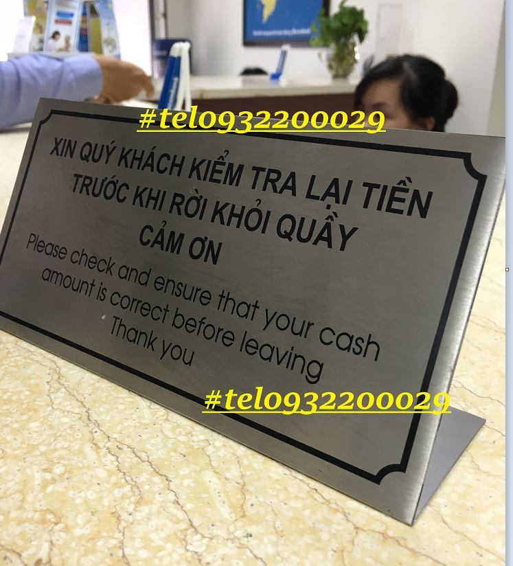 Tiếp đó là các loại Biển hiệu phòng ban, hướng dẫn thông báo khác như: Biển tourdesk, Biển information form, Biển đón sân bay cho các công ty du lịch, Biển tiếp đón khách, Biển quầy lễ tân ở sảnh công ty. Tương tự như các loại biển trên cũng có thể gia công sản xuất bằng các chất liệu như Mica, đồng, inox, hoặc gỗ. Tùy vào nhu cầu, thẩm mỹ cũng như tài chính mà chúng tôi sẽ tư vấn quý khách phương án thiết kế các loại biển. Chẳng hạn như với chất liệu đồng, inox thì sẽ cho ra những tấm biển sang trọng, bền bỉ với thời gian tuy nhiên giá thành tương đối cao. Ngược lại với chất liệu mica nhẹ, nhiều màu sắc, dễ thi công sẽ cho ra những tấm biển đa dạng màu sắc, trẻ trung, bóng bẩy. Hay như với những tấm biển bằng gỗ thì lại mang đến hiệu ứng ấm áp mộc mạc vintage.