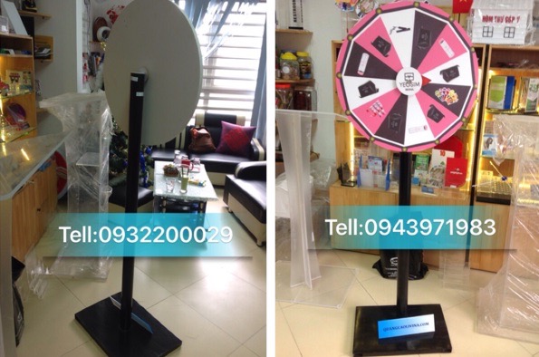 Để đáp ứng nhu cầu cung cấp vòng quay trúng thưởng, vòng quay may mắn cho các doanh nghiệp. QUANGCAOLIVINA.COM nhận đặt làm vòng quay trúng thưởng từ ít đến nhiều trong thời gian nhanh nhất. Vòng quay trúng thưởng có những dạng như dạng đứng, dạng để bàn, dạng treo tường tùy theo không gian hoạt động của chương trình. Với nhiều năm kinh nghiệm và số lượng khách hàng đặt vòng quay may mắn nhiều, QUANGCAOLIVINA.COM tự tin là công ty chuyên sản xuất và cung cấp các loại vòng quay trúng thưởng, vòng quay may mắn trong các buổi sự kiện .