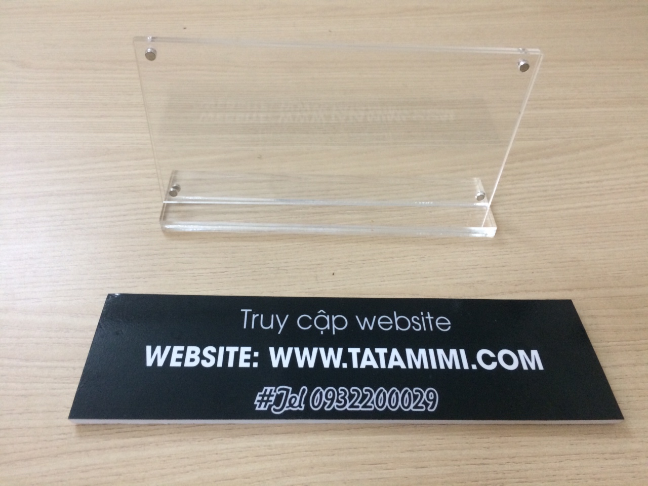 Biển chức danh mica hay kệ chức danh mica là dòng sản phẩm được rất nhiều công ty, tổ chức, nhà hàng sử dụng bởi sự tiện ích và đơn giản của nó. Kệ chức danh mica để bàn kiểu chữ A, thường được làm bằng mica trong suốt dày từ 2 – 3mm tùy theo kích thước mà ta lựa chọn độ dày của mica. Đây là loại biển dùng rất phổ biến trong công ty, nhà hàng , khách sạn… đôi khi còn được sử dụng ở các hội trợ, triển lãm giới thiệu sản phẩm để ghi thông tin của sản phẩm.