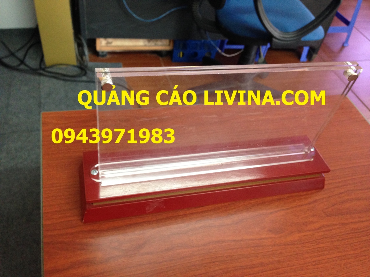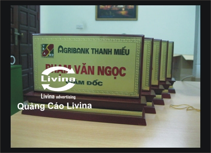 Biển chức danh, biển chức danh đế gỗ mặt gỗ, biển chức danh đế gỗ viền đồng, biển chức danh mica theo yêu cầu được dùng để để ở bàn lãnh đạo tại các công ty, cơ quan nhà nước, các đơn vị trực thuộc tùy theo nhu cầu của người sử dụng. Ưu điểm của biển chức danh đế gõ mặt gỗ là khá gọn, đẹp mắt, nội dung thông điệp truyền tải đủ để người đối diện hiểu, nắm bắt thông tin nhanh chóng. Hơn nữa Biển chức danh, biển chức danh đế gỗ mặt gỗ, biển chức danh đế gỗ viền đồng, biển chức danh mica theo yêu cầu còn có thể dễ dàng di chuyển theo ý muốn của bạn.