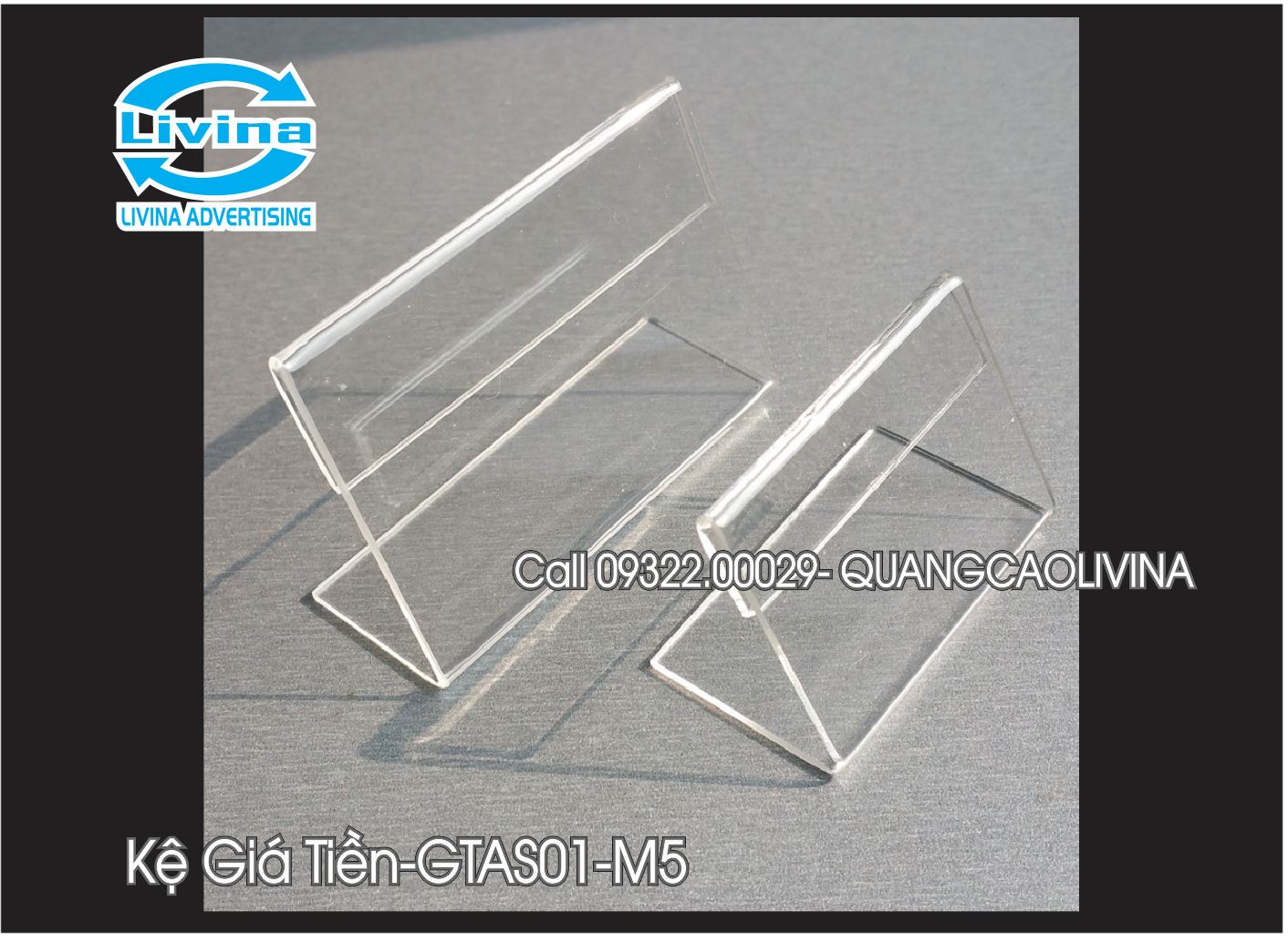 QUANGCAOLIVINA chuyên nhận làm kệ để giá tiền, kệ giá tiền làm bằng mica, kệ mica để bàn, kệ giá sản phẩm chữ A, kệ giá chữ L, kệ Mica theo mẫu mã phù hợp với nhu cầu của khách hàng. Những mẫu mã sản phẩm được chúng tôi cung cấp ra thị trường với giá rẻ, đảm bảo chất lượng, phù hợp với từng loại sản phẩm.