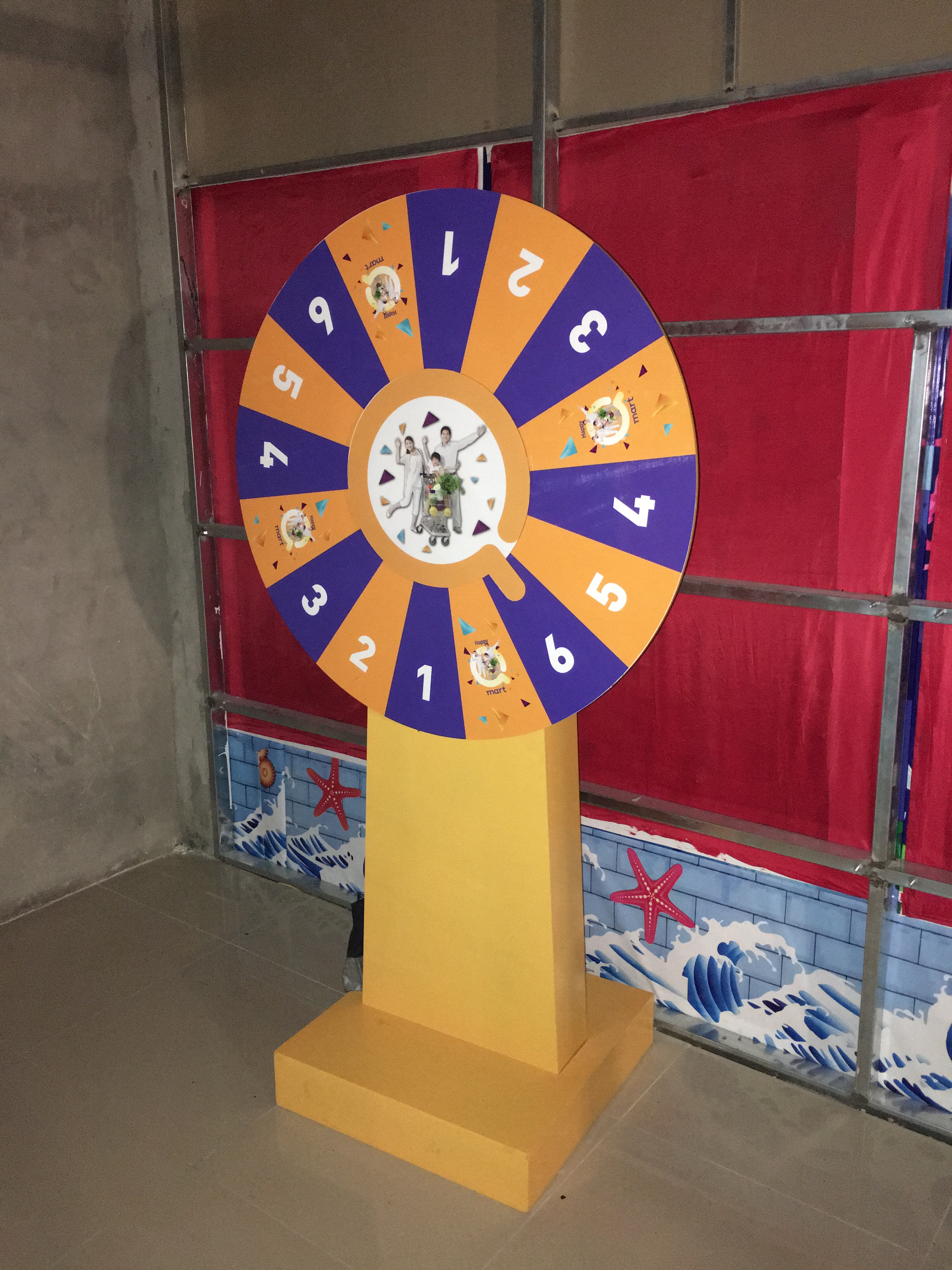 Với kết cấu vững chắc nhưng rất cơ động, vòng quay trúng thưởng có thể di chuyển, tăng chiều cao, kích thước theo yêu cầu phù hợp với mẫu mã chất lượng. Chân được làm vững chắc, chiều cao thân cũng có thể điều chỉnh được nhờ bộ phận tăng đơ dễ điều chỉnh. Điểm khác biệt của sản phẩm này là tính thẩm mỹ rất cao và thiết bị vận hành cực kỳ ổn định và bền bỉ.