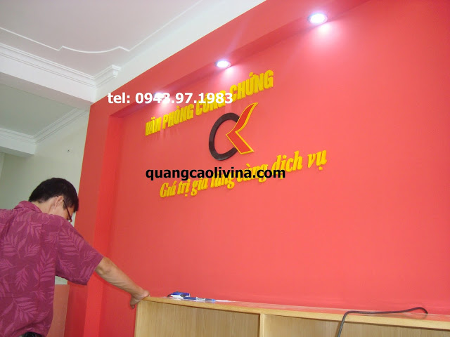 Quầy lễ tân cần có back chữ nổi mica để trang trí