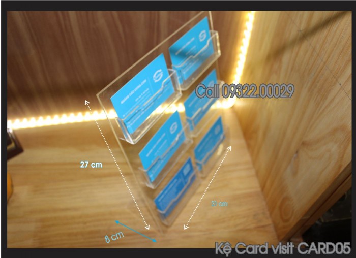 Chúng tôi luôn nhận làm card visit theo yêu cầu đảm bảo chất lượng, phù hợp với nhu cầu của quý khách hàng. Với thiết kế khá phù hợp, kệ card visit được thiết kế khá đẹp mắt, đảm bảo nhu cầu theo tiêu chuẩn.Hộp card visit mica được thiết kế khá gọn, bắt mắt, phù hợp để đặt ở nơi làm việc, treo tường, ở mọi nơi. Không những vậy, bạn còn có thể đặt theo ý muốn của mình như gia công, trang trí, in ấn logo hoặc hình ảnh sản phẩm ….Hãy đến với chúng tôi, bạn sẽ được tham khảo những mẫu mã phù hợp với ý muốn của mình, hoặc truy cập vào trang wed: QUANGCAOLIVINA.COM để đội ngũ nhân viên tư vấn và thiết kế cho bạn. Hãy để chiếc hộp card visit mica đồng hành cùng bạn ở mọi lúc mọi nơi.