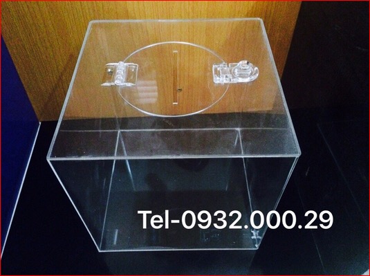 - Hòm mica có thể trang trí logo công ty,tên thương hiệu hoặc tên chương trình