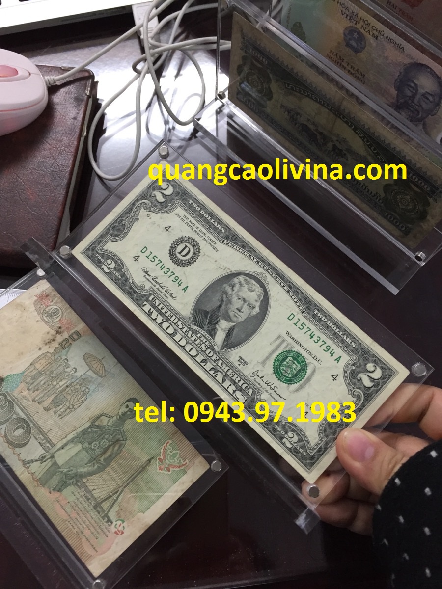 Tờ 2 đô may mắn vào kệ mica đẹp