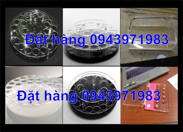 - Phần kệ đựng: phần kệ đựng được thiết kế từ 2 tấm mica trong 3mm gắn liền với trục và cách nhau 2cm. Với việc sử dụng công nghệ cắt laser tự động tạo thành các lỗ tròn với kích thước vừa khít lọ đựng sơn.