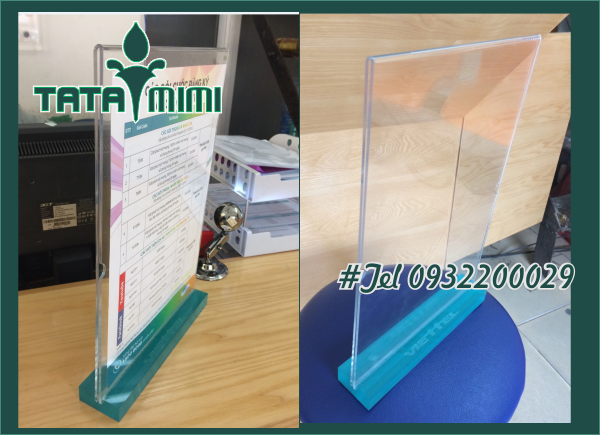 Kệ mica a4 để bàn kích thước a4 dùng để báo giá hai mặt được làm từ mica 2mm liền đế hoặc đế rời, kệ mica a4 để bàn đế tam giác, kệ mica a4 đế chân rút, đế ghép, kệ mica a4 đế trong dày 20mm, kệ a4 để bàn hai mặt, kệ a4 để bàn hai ngăn, khay mica a4 để tài liệu.
