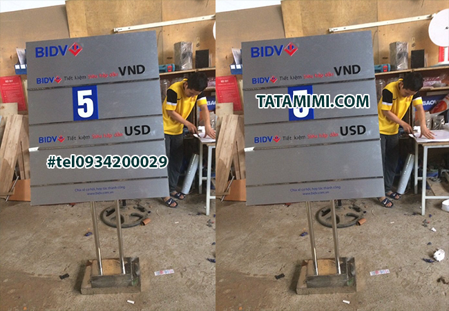 Bộ số của bảng lãi suất sẽ được cắt từ mica 2mm màu theo màu sắc thiết kế của từng ngân hàng riêng biệt. Vật tư mica đài loan có nhiều màu phù hợp với bộ nhận dạng thương hiệu của ngân hàng nói riêng và toàn ngành ngân hàng nói chúng.