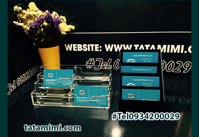 Kệ mica để name card hoặc card visit hay còn gọi là danh thiếp là loại kệ được dùng thông dụng nhất hiện nay tại các công ty. Loại kệ này thường có nhiều ngăn nhiều tầng, tuy nhiên cũng có loại chỉ có một ngăn nhỏ ngọn chuyên dụng để đặt những tấm danh thiếp vào.