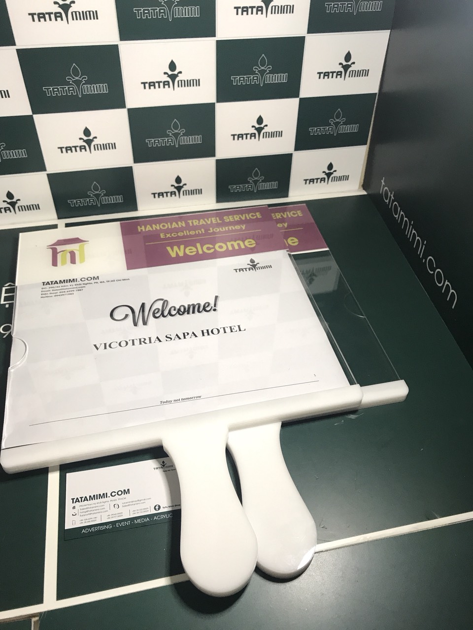 TATAMIMI là đơn vị chuyên cung cấp các sản phẩm làm từ mica đài loan, bán vật liệu quảng cáo, bán mica tấm, mica ống các loại, và làm biển quảng cáo các loại. Trong đó có biển đón sân bay cầm tay với nhiều kích thước thiết kế theo yêu cầu.