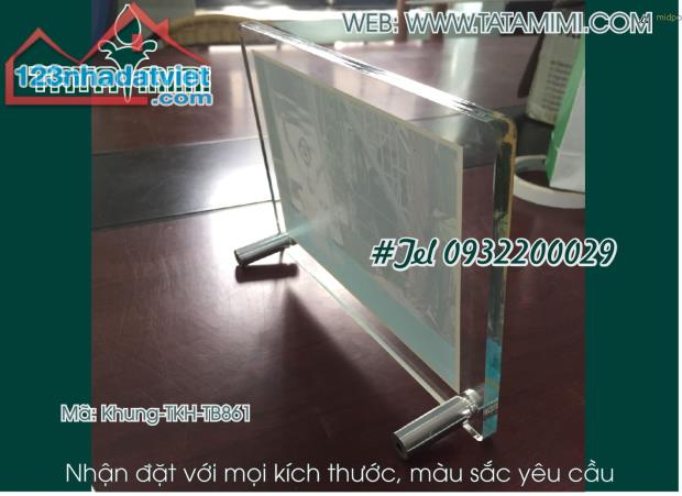 Khung mica có thể dùng làm khung tranh trang trí tại bàn làm việc cá nhân hay trang trí tại quầy lễ tân trang trí bàn tiếp khách của các cá nhân các công ty, tổ chức.